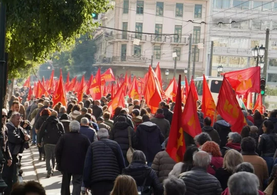 В центре Афин развернулась многотысячная акция протеста в рамках общенациональной 24-часовой забастовки.