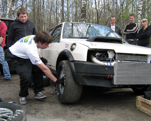 - Двигатель собран на основе российских агрегатов с применением американской гибридной турбины. Резину специально меняем перед заездами. Это специальная американская резина, предназначенная для этого вида гонок. На ней нет протектора, чтобы пятно контакта с дорогой было больше, - рассказал Артем Демихов.