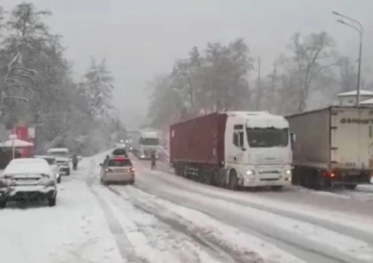 С утра в городе идут осадки, а ночью прошел дождь с сильным градом. Фактически дороги покрылись плотным слоем льда и снежной кашей.