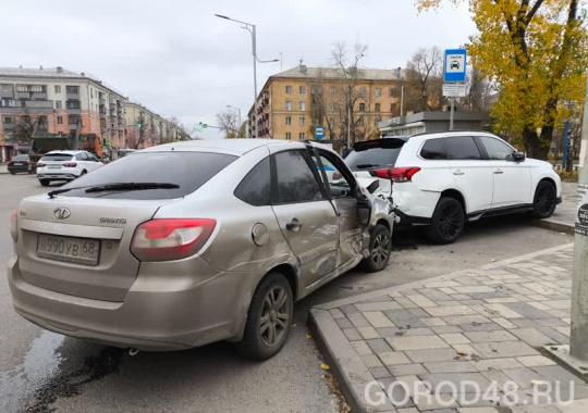 Три автомобиля столкнулись в Липецке на проспекте Мира. Машины серьезно повреждены, водители не пострадали.